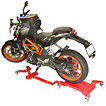 〇 サイドスタンドと後輪を乗せるバイクドーリーで、重いバイクも簡単に取り回し可能です。
